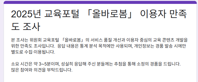 | 2025년 교육포털 「올바로봄」 이용 만족도 조사 |